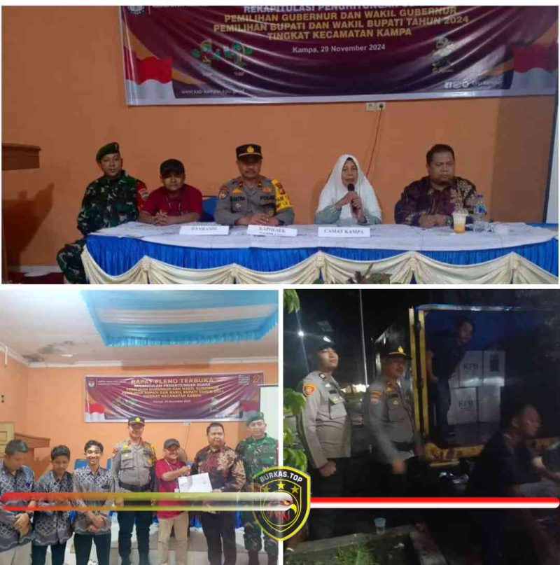 Burkas tol — Kampar —Di laksanakan Pada hari Sabtu tanggal 30 November 2024 sekira Pukul 20.30 Wib, di Aula Kantor Camat Kampar telah dilaksanakan Penutupan Rapat Rekapitulasi Hasil Penghitungan Perolehan Suara di Tingkat Kecamatan Pemilihan Gubernur dan Wakil Gubernur, Bupati dan Wakil Bupati Tahun 2024 Kab. Kampar.