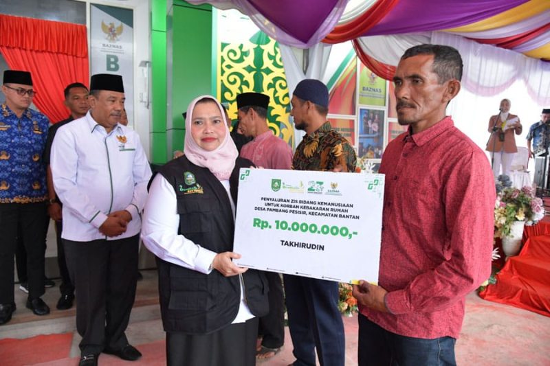 Lalu penyaluran zakat bidang kemanusiaan, berupa rumah layak huni diterima oleh Ahmad Syafi’i asal Desa Pangkalan Batang Barat sebesar Rp15 juta, bantuan korban rumah kebakaran kepada dua penerima yaitu Muhammad As’ari asal Sungai Alam dan Takhirudin asal Pambang Pesisir, masing-masing menerima bantuan sebesar Rp10 juta.