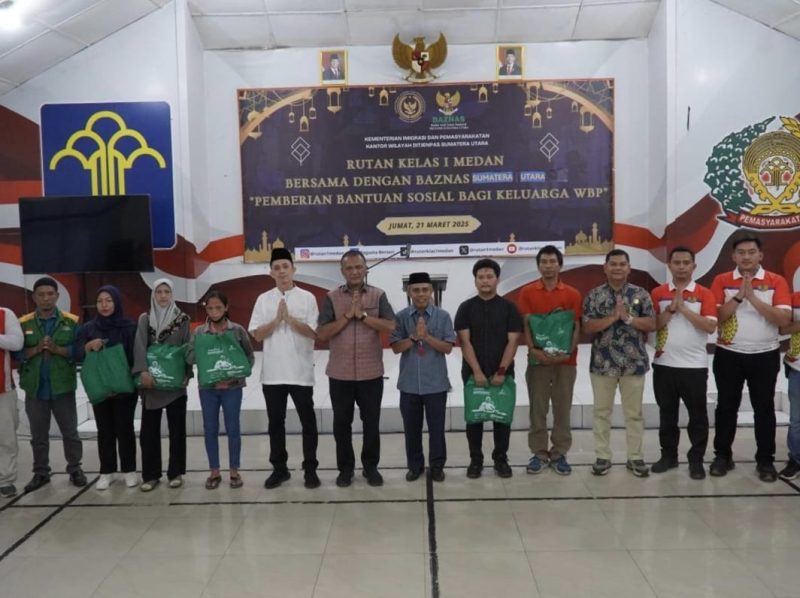 BURKAS.TOP, MEDAN |– Dalam rangka menjalankan 13 Program Akselerasi Menteri Imigrasi Dan Pemasyarakatan, Bapak Agus Andrianto, yakni pada poin ke-4, bantuan sosial kepada keluarga warga binaan yang kurang mampu dan masyarakat sekitar UPT, Rumah Tahanan Negara (Rutan) Kelas I Medan Kanwil Ditjenpas Sumut bekerjasama dengan Badan Amil Zakat Nasional (Baznas) Provinsi Sumatera Utara membagikan 50 Paket Bantuan Sosial berupa sembako kepada 50 Orang Keluarga Warga Binaan yang kurang mampu. Jumat (21/3/25).