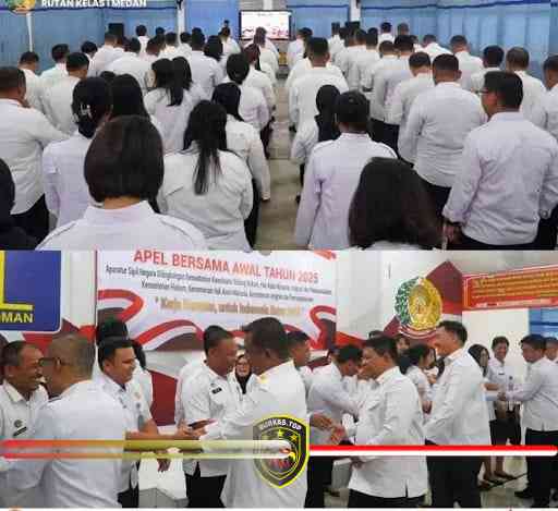 BURKAS.TOP, MEDAN |– Masih dalam suasana semangat menyambut tahun baru, Rutan Kelas I Medan mengikuti Apel Bersama Awal Tahun 2025 secara virtual melalui zoom yang digelar oleh Kementerian Koordinator Bidang Hukum, Hak Asasi Manusia, Imigrasi dan Pemasyarakatan dan dihadiri oleh seluruh Aparatur Sipil Negara (ASN) di lingkungan Kementerian tersebut.