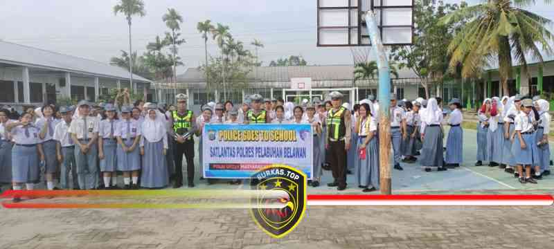 BURKAS.TOP, MEDAN LABUHAN | – Satuan Lalu Lintas (Sat Lantas) Polres Pelabuhan Belawan menggelar program Police Goes To School di SMA Negeri 9 Medan, Kelurahan Sei Mati, Senin (6/4/2026). Kegiatan ini bertujuan meningkatkan kesadaran pelajar akan pentingnya disiplin berlalu lintas sejak dini.
