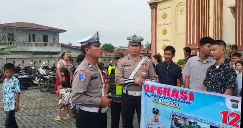 BURKAS.TOP, DELI SERDANG |- Dalam rangka Operasi Keselamatan Toba 2025, personel Satuan Lalu Lintas Polresta Deli Serdang melaksanakan sosialisasi dan edukasi keselamatan berkendara kepada para jemaat Gereja HKBP di Jalan Imam Bonjol, Kecamatan Lubuk Pakam, pada Minggu 16 Februari 2025.