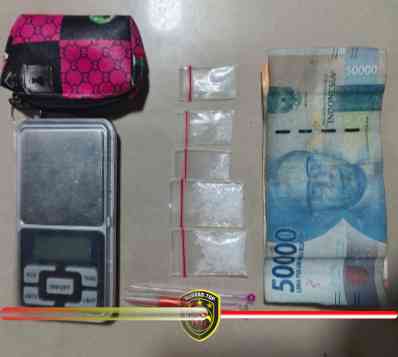 Tersangka yang berhasil diamankan berinisial APT (18), dengan barang bukti berupa 5 plastik klip sabu, 2 pipet ujung runcing, 1 buah dompet, 1 unit timbangan elektrik, serta uang tunai sebesar Rp60.000,-.