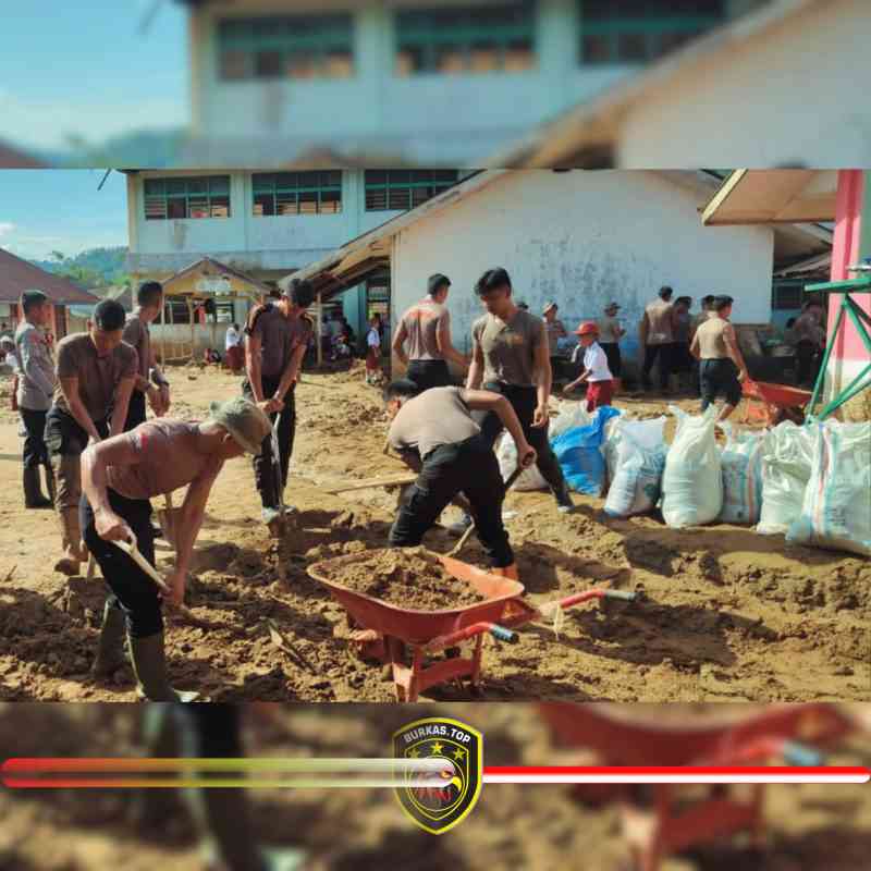 BURKAS.TOP, TAPANULI TENGAH | — Upaya pemulihan pascabencana terus dilakukan aparat gabungan di wilayah Tapanuli Tengah. Pada Senin (12/01/2026), personel SAR Batalyon A Pelopor Satuan Brimob Polda Sumatera Utara bersama personel gabungan TNI/Polri melaksanakan pembersihan material lumpur di SDN 152982 Tukka 1 B Hutanabolon, Desa Hutanabolon, Kecamatan Tukka.