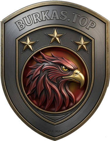Logo Burkas.top dirancang dengan estetika modern bergaya emblem atau perisai yang melambangkan kekuatan dan perlindungan terhadap kebenaran. Berikut adalah penjelasan komponen di dalamnya: