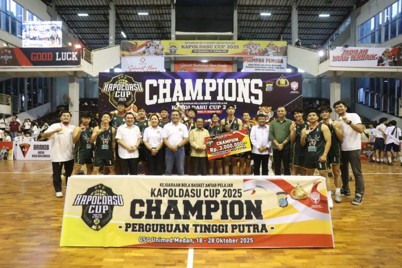 BURKAS.TOP, MEDAN | – Suasana GOR Gedung Serba Guna Unimed, Selasa (28/10/2025), dipenuhi sorak sorai para supporter dan penonton yang antusias menyaksikan babak puncak Kapoldasu Cup 2025, turnamen bola basket bergengsi antar pelajar SMA/SMK dan mahasiswa se-Sumatera Utara. Kegiatan ini berlangsung meriah sekaligus menjadi momentum semangat kebersamaan dan sportivitas di Hari Sumpah Pemuda ke-97.