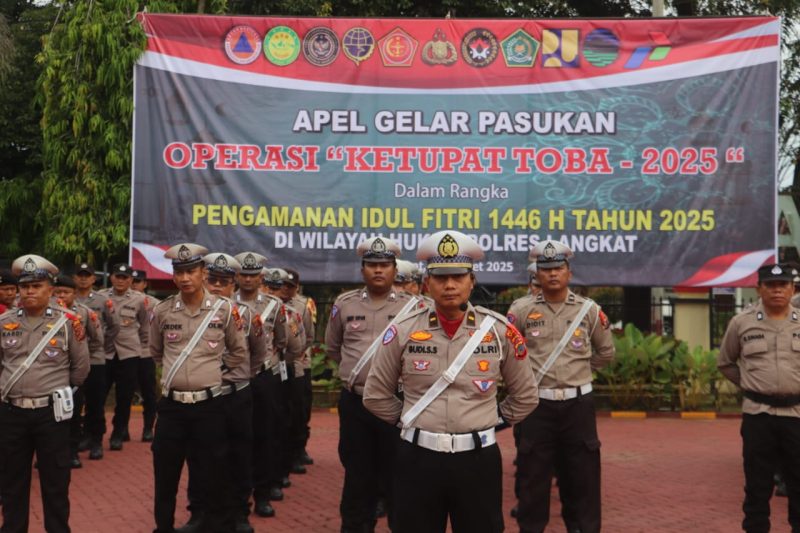BURKAS.TOP, LANGKAT |– Polres Langkat menggelar Apel Gelar Pasukan Operasi Ketupat Toba 2025 dalam rangka pengamanan mudik dan perayaan Idul Fitri 1446 H pada Kamis (20/3/2025) di Lapangan Jananuraga, Polres Langkat.