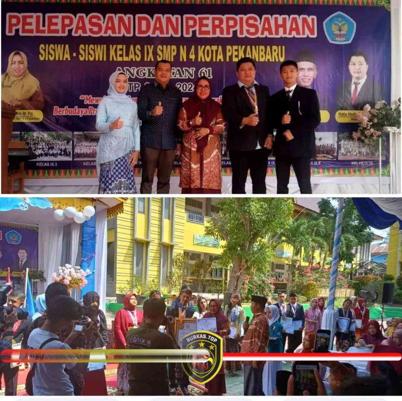 Burkas top — Pekanbaru – Sekolah Menengah Pertama (SMP) Negeri 4 Pekanbaru menggelar acara seremoni pelepasan dan perpisahan siswa Kelas IX Angkatan tahun 2023 – 2024 di halaman sekolah pada Sabtu (25/5/ 2024). Acara ini dihadiri oleh seluruh siswa, orang tua, dan para guru.