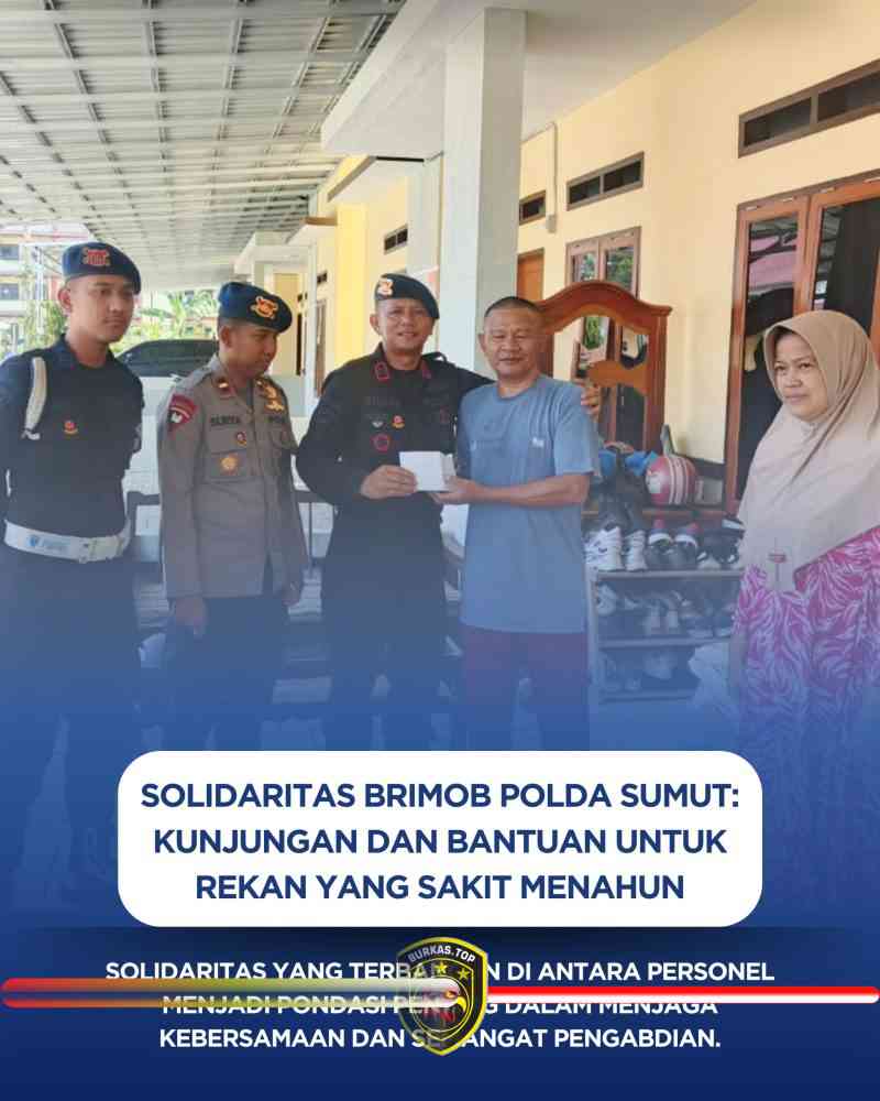 BURKAS.TOP, MEDAN | — Kepedulian dan kebersamaan kembali ditunjukkan oleh personel Satuan Brimob Polda Sumatera Utara melalui kegiatan bakti sosial dalam program Minggu Kasih bertema “Solidaritas Tanpa Batas: Brimob Polda Sumut Menguatkan Rekan yang Sakit” pada Minggu (8/3/2026).