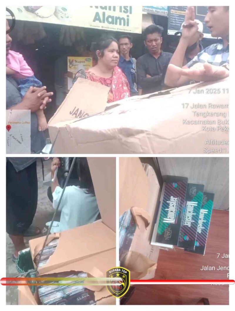 Burkas top –Pekanbaru—,Ratusan bungkus rokok ilegal disita di jalan saat sedang mengantarkan ke salah satu toko di jalan rawamangun kelurahan Tangerang Labuai kecamatan bukit raya kota pekanbaru.