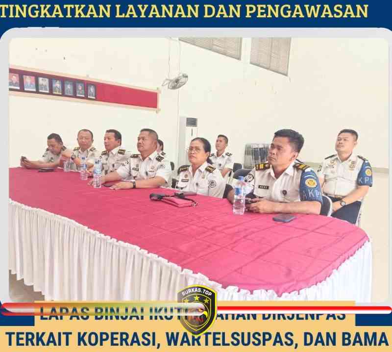 BURKAS.TOP, BINJAI | – jajaran Lembaga Pemasyarakatan (Lapas) Kelas IIA Binjai mengikuti Rapat Pengarahan dari Direktur Jenderal Pemasyarakatan terkait pengelolaan Koperasi Pemasyarakatan Indonesia, Wartelsuspas, serta penyediaan bahan makanan (BAMA) pada Lapas dan Rutan, Senin (06/04/2026).