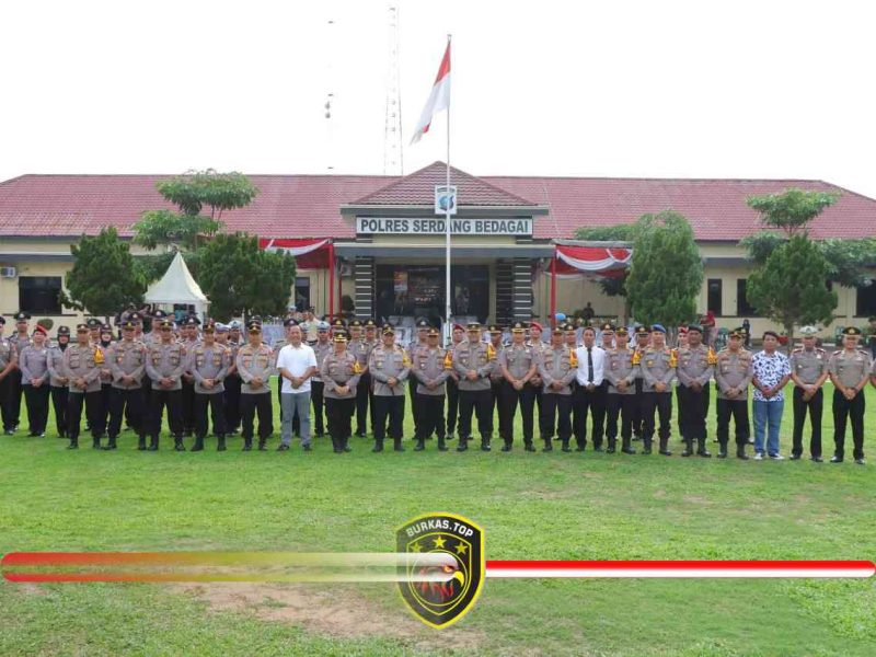 BURKAS.TOP, SERGAI |- Kepolisian Resort Serdang Bedagai menggelar upacara Kenaikan Pangkat Personel Polres Serdang Bedagai bertempat di lapangan apel Mapolres Serdang Bedagai Selasa (31/12/2024) sekira pukul 16:15 WIB