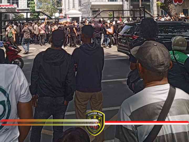 BURKAS.TOP, MEDAN | – Aksi unjuk rasa yang digelar ratusan massa di depan Gedung DPRD Sumatera Utara, Jalan Imam Bonjol, Medan, Selasa (26/8) berakhir ricuh.