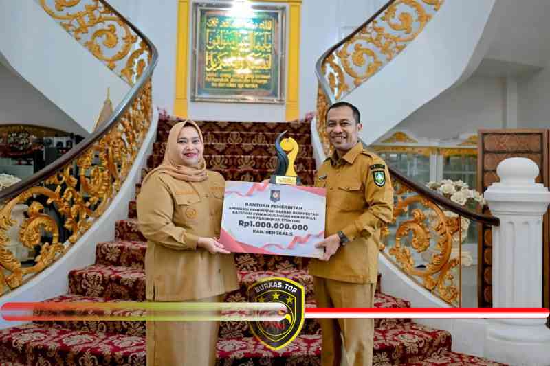 BENGKALIS | BURKAS.TOP, – Wakil Bupati Bengkalis H. Bagus Santoso menyerahkan Penghargaan Apresiasi Pemerintah Daerah Berprestasi Tahun 2026 kepada Bupati Bengkalis Kasmarni, di Wisma Sri Mahkota Bengkalis, Selasa 28 April 2026.